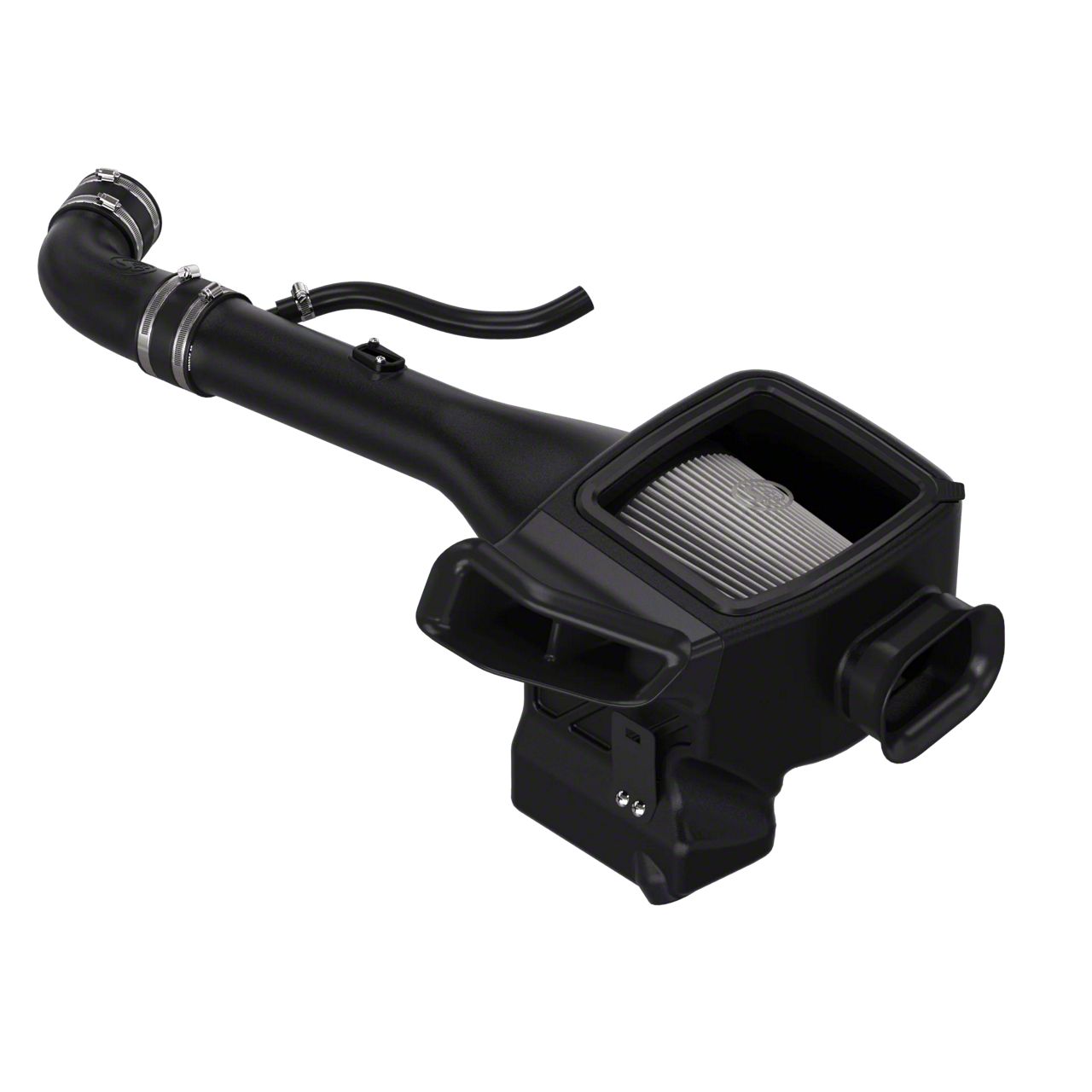 Construction and Appearance. This intake features a high-flow intake tube that mounts directly to the throttle body, paired with a dry extendable filter that offers easy maintenance. The snap-in lid design allows for tool-free filter access, while the silicone edge trim creates a tight seal to block heat and debris. The entire system is finished in a sleek black texture that complements modern engine bays and delivers OEM-level fit and finish.