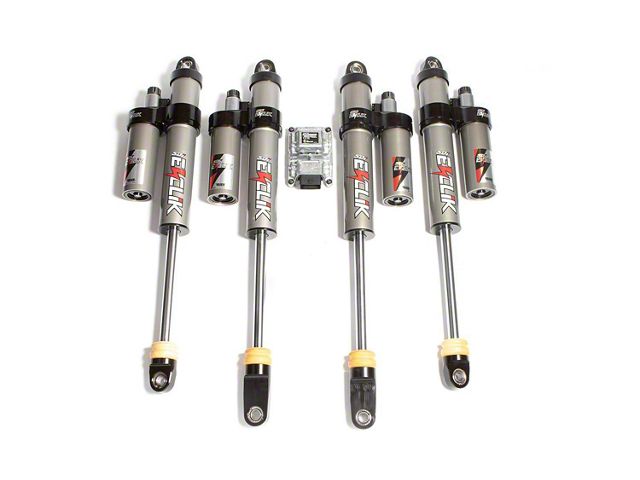 Advanced Electronic Shock System. The SDi E-CLIK ACTIVE Front and Rear Shocks with Pro Menu provide cutting-edge suspension control, ensuring optimal performance across various terrains. With three adjustable base modes—Trail, Desert, and Street—this system automatically adapts up to 250 times per second based on driving conditions, delivering superior handling and comfort.