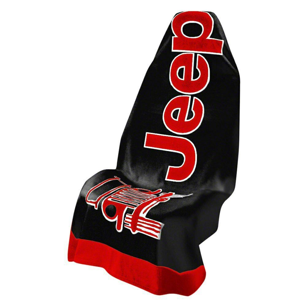 Outstanding Comfort and Style. Protect your vehicle’s seat with this Towel2Go Seat Cover with Jeep and Grille Logo; Black and Red. Its combination of black and red colors provides an impressive style to the interior of your Jeep without compromising comfort and seat safety. This makes it ideal for keeping the seat protected against damage caused by mud, debris, and pets. Additionally, this seat cover is designed to be also used as a beach towel so you can have a relaxing break at the beach or the trails after a grueling adventure.