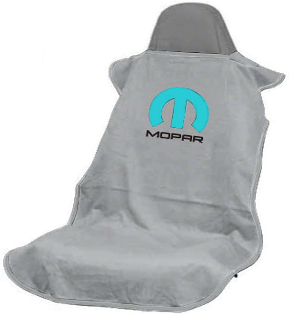 Seat Protection for Everyday Activities. Keep your car seat protected from debris and moisture with this Gray Seat Towel with Mopar Logo. This full-length seat towel features a terrycloth construction and an easy “drape-on” design. These features make this seat towel perfect for truck owners who need extra car seat protection against sweat, moisture, debris, and even pet hairs. Likewise, its terrycloth construction makes this accessory more than capable when used as a regular towel.