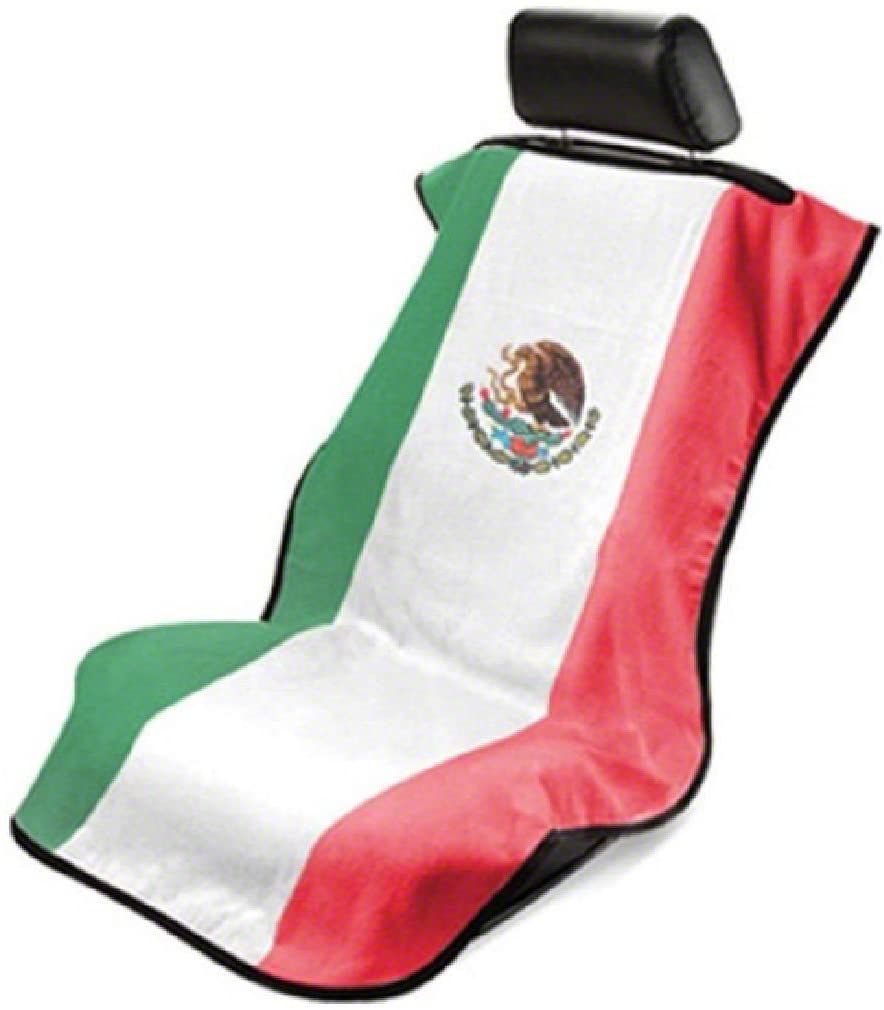Take Mexico with You Wherever You Go. Display your love for Mexico with this Seat Cover in Mexican Flag Design of Red, White and Green. It's made of 100% cotton/terry velour fabric that guarantees your utmost comfort.