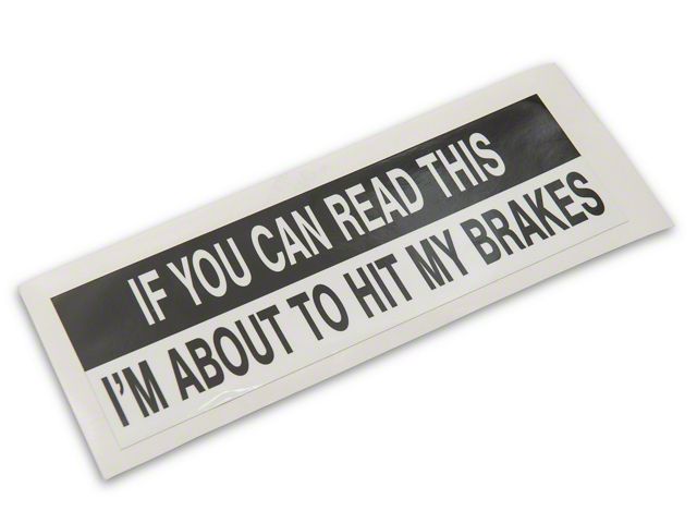 If You Can Read This. This humorous novelty decal reads "If You Can Read This, I'm About To Hit My Brakes" sending a message to all those tailgaters out on the road. This Decal can be applied to any smooth flat surface and looks especially good in your rear window or on your bumper or tailgate.