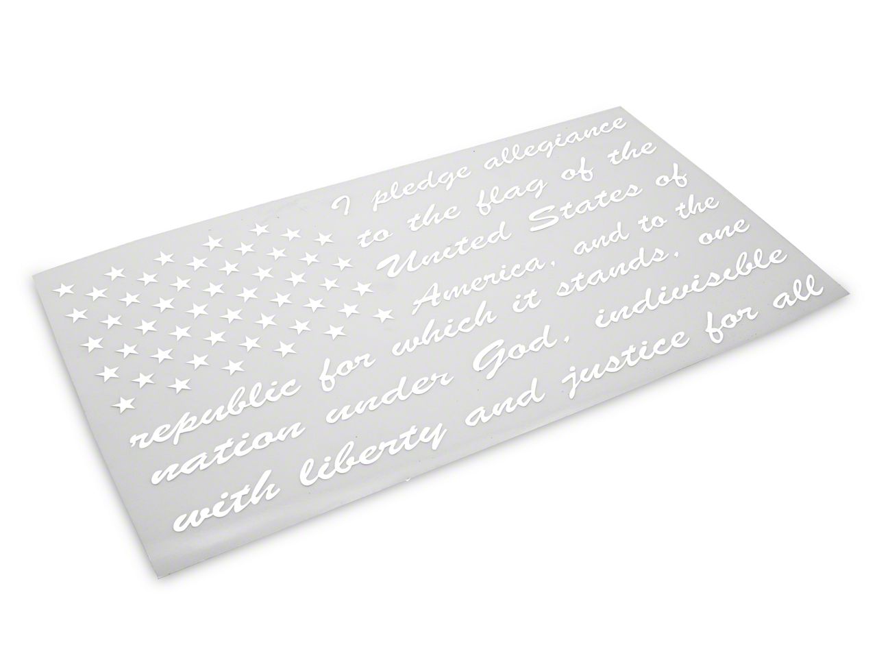 Application. This SEC10 Pledge of Allegiance Flag Decal; White features a universal fitment and will fit all makes and models. Sold individually.