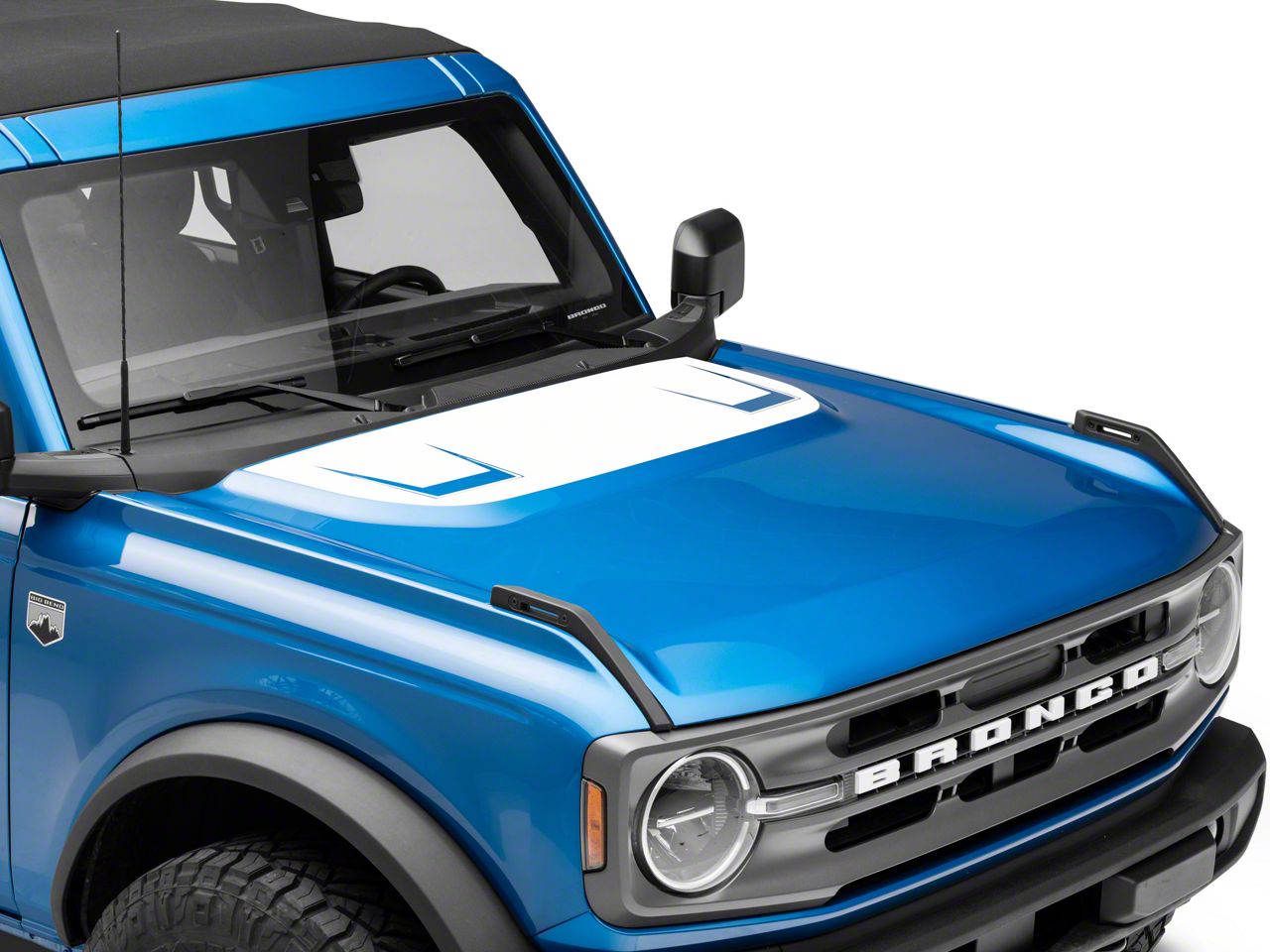 Application. This SEC10 Version 1 Hood Decal; White is designed to fit 2021-2026 Ford Bronco models.Installation Note. For easier installation it is highly recommended to remove the hood mounted washer nozzles prior to applying this vinyl decal. The washer nozzles should be reinstalled after the decal has been set in place.