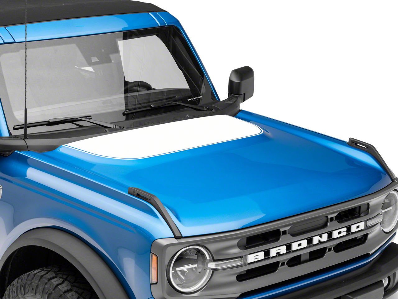 Application. This SEC10 Version 3 Hood Decal; White is designed to fit 2021-2026 Ford Bronco models.Installation Note. For easier installation it is highly recommended to remove the hood mounted washer nozzles prior to applying this vinyl decal. The washer nozzles should be reinstalled after the decal has been set in place.