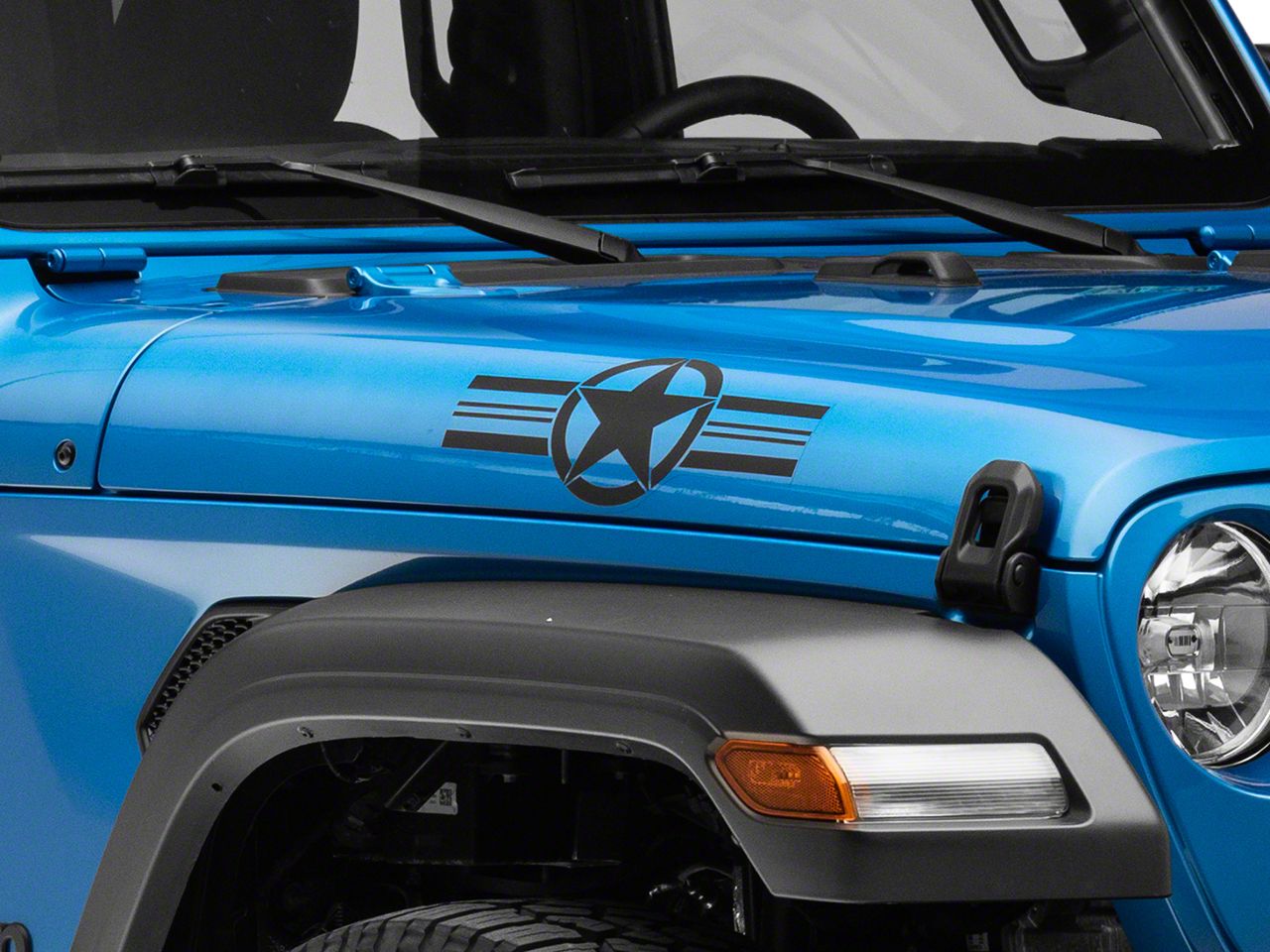 Stars and Stripes. Now you can add patriotic US Military styling to your Jeep Gladiator with this Stars and Stripes Accent Decal. Featuring three stripes with the Oscar Mike star in the center, this Decal harkens back to the second world war and was used to identify US vehicles from the ones that were already in use by the allied forces. This small matte black Stars and Stripes Accent Decal can be applied to any smooth flat surface and looks especially good across your Jeep's hood, fender or rocker panel.