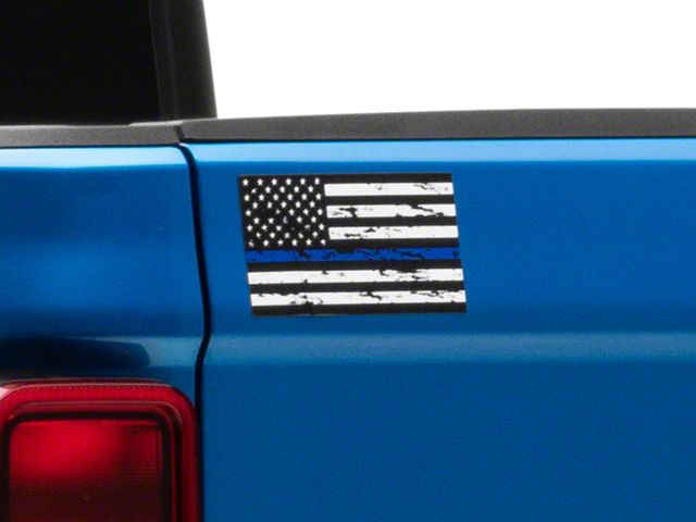 Patriotic Styling. A set of SEC10 Small Distressed Flag Decals are the perfect way to give your ride the exciting patriotic styling it's been lacking. Also notable is the blue line that serves as one of the flag's stripes to show support for the men and women of the United States law enforcement agency's.
