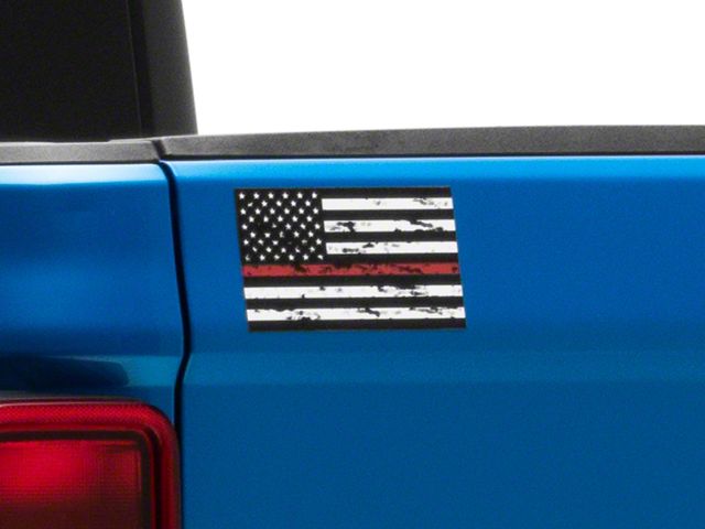 Patriotic Styling. A set of SEC10 Small Distressed Flag Decals are the perfect way to give your ride the exciting patriotic styling it's been lacking. Also notable is the red line that serves as one of the flag’s stripes to show support for all of America's Fire Fighters.