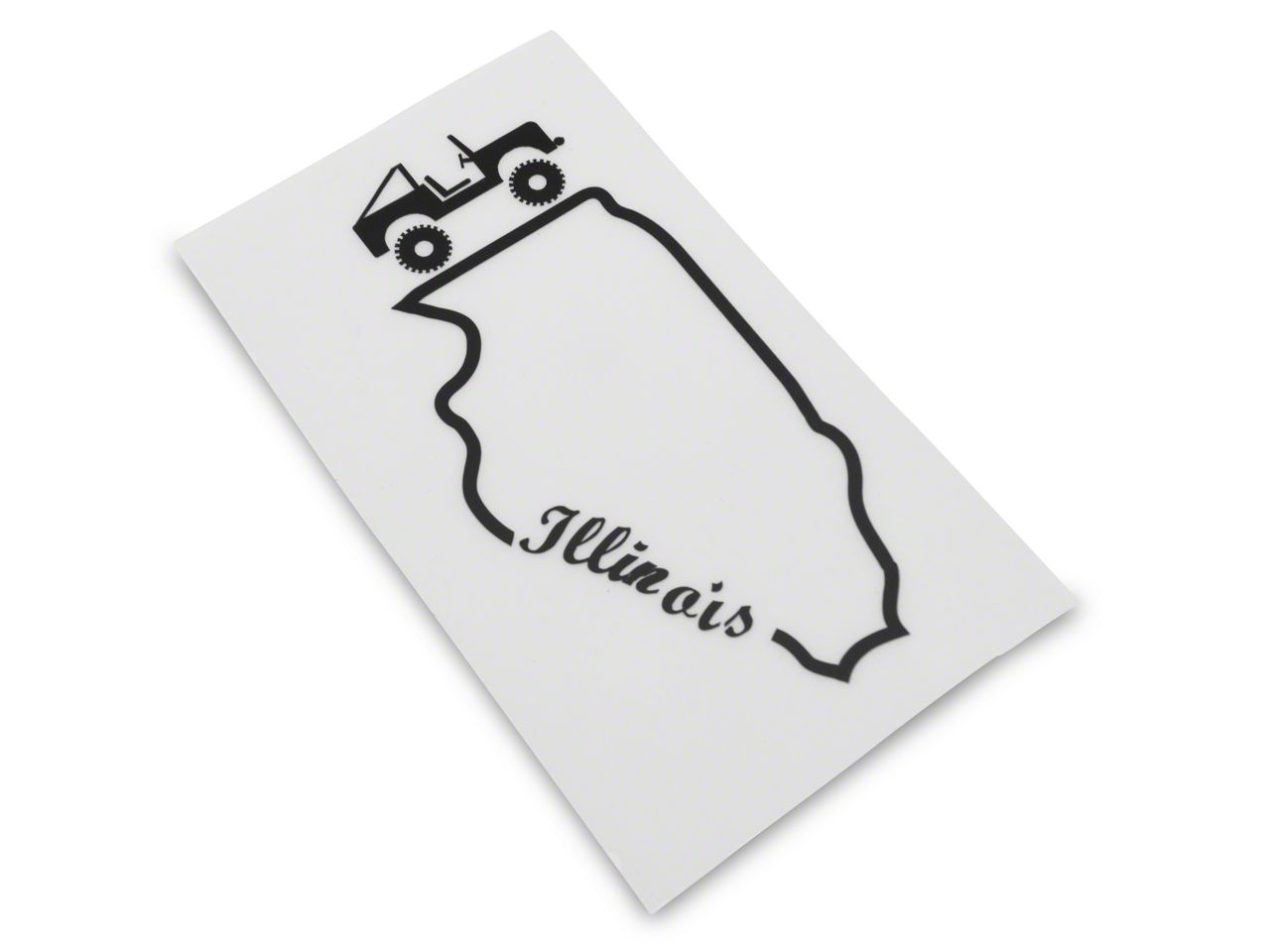 Illinois Silhouette Decal. This decal shows the silhouette of the state of Illinois with an all-terrain vehicle driving around the outline. This Illinois Silhouette Decal can be applied to any smooth flat surface and looks especially good in your rear/side windows or on your tailgate.