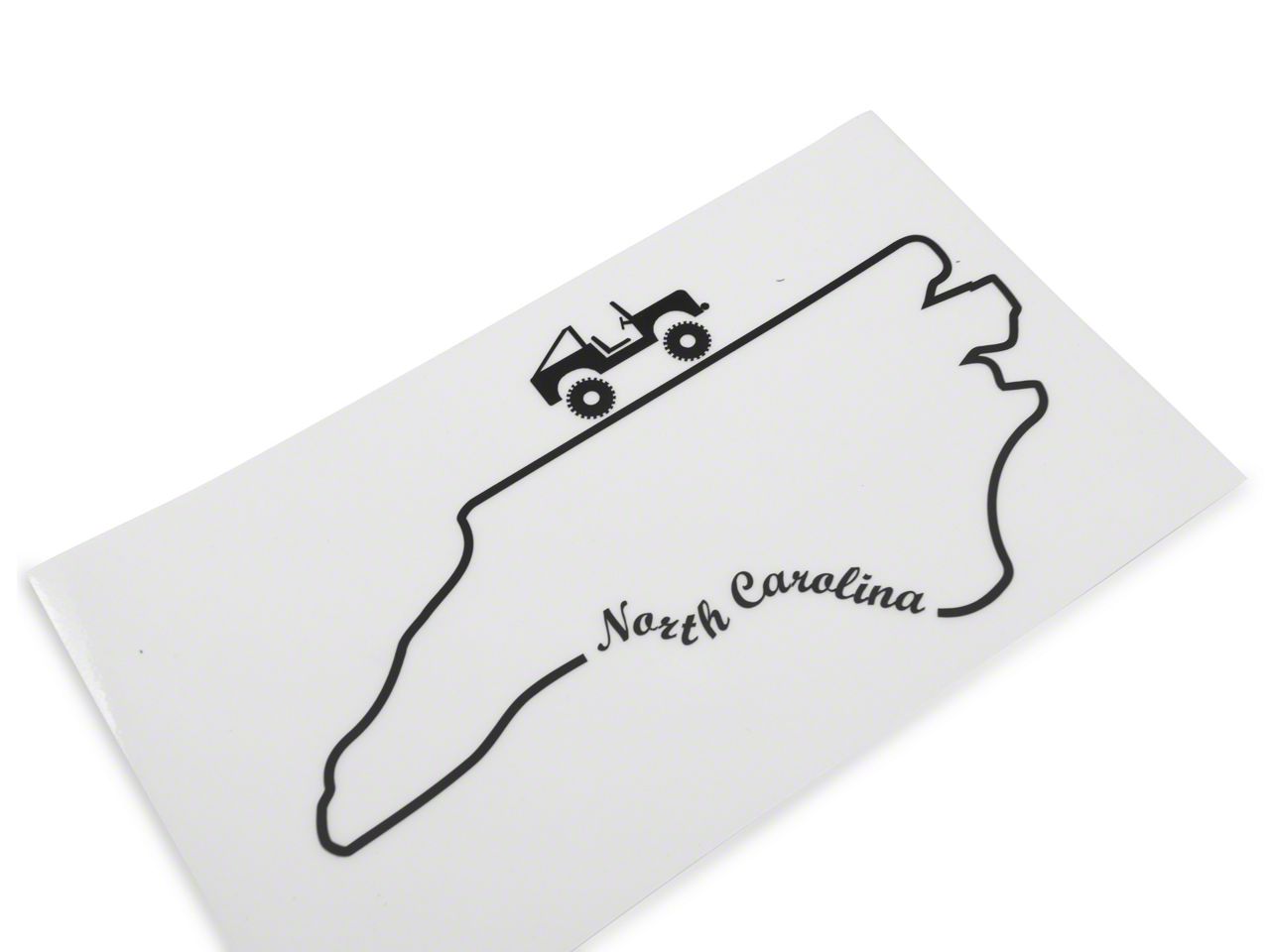 North Carolina Silhouette Decal. This decal shows the silhouette of the state of North Carolina with an all-terrain vehicle driving around the outline. This North Carolina Silhouette Decal can be applied to any smooth flat surface and looks especially good in your rear/side windows or on your tailgate.