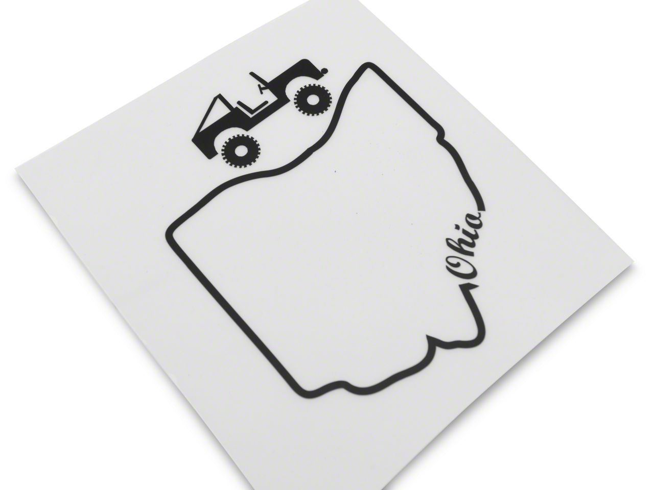 Ohio Silhouette Decal. This decal shows the silhouette of the state of Ohio with an all-terrain vehicle driving around the outline. This Ohio Silhouette Decal can be applied to any smooth flat surface and looks especially good in your rear/side windows or on your tailgate.