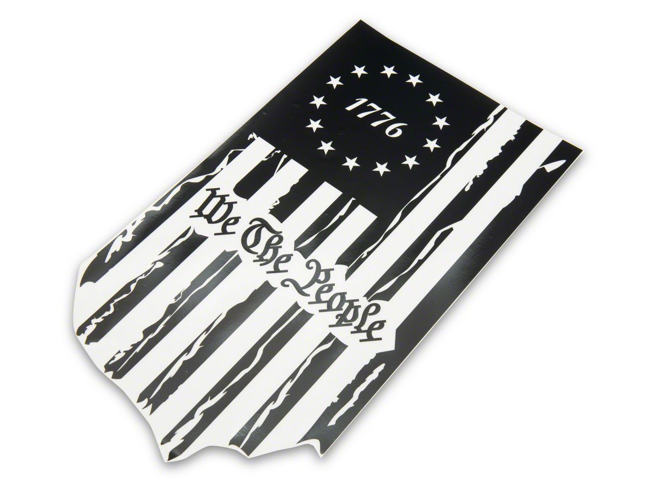 Patriotic Styling. Add patriotic styling to your ride with this SEC10 We The People Flag Decal. This decal features a vertical, distressed Besty Ross American Flag design with "We the People" written across it. This Decal has a universal design, so it can be applied to any smooth flat surface and looks especially good in your rear/side windows or on your rear quarter panel.