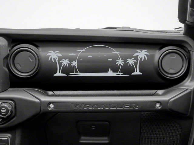 Application. This SEC10 Dash Scene Beach Decal; Silver is designed to fit 2018-2026 Jeep Wrangler JL models.