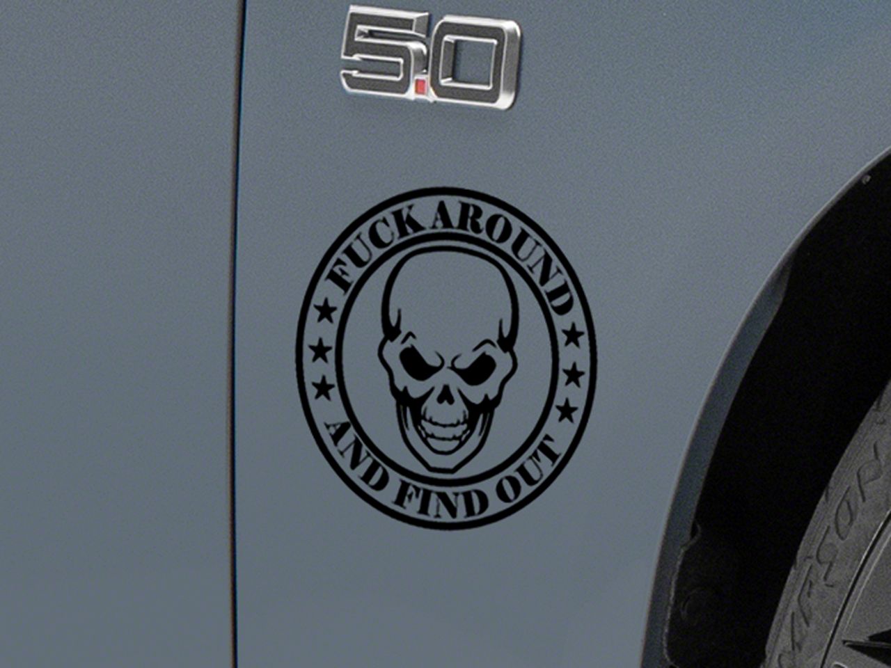 FAFO Skull Decal. A simple and inexpensive way to personalize the exterior styling of your vehicle is with a FAFO Skull Decal from SEC10. This Decal features a menacing skull design encircled with the text "F*ck Around and Find Out". This decal is ideal for those who stand on business.