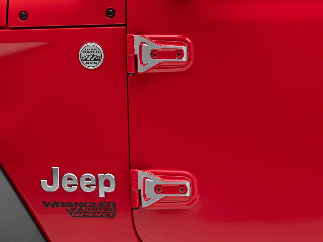 Exterior Door Hinge Accent Decals. SEC10's Door Hinge Accent Decals are an easy and inexpensive way to upgrade the exterior styling of your Jeep Wrangler. Designed to be applied directly over your Wrangler's exterior door hinges, these Accent Decals will give your Jeep an eye-catching, pop of color.