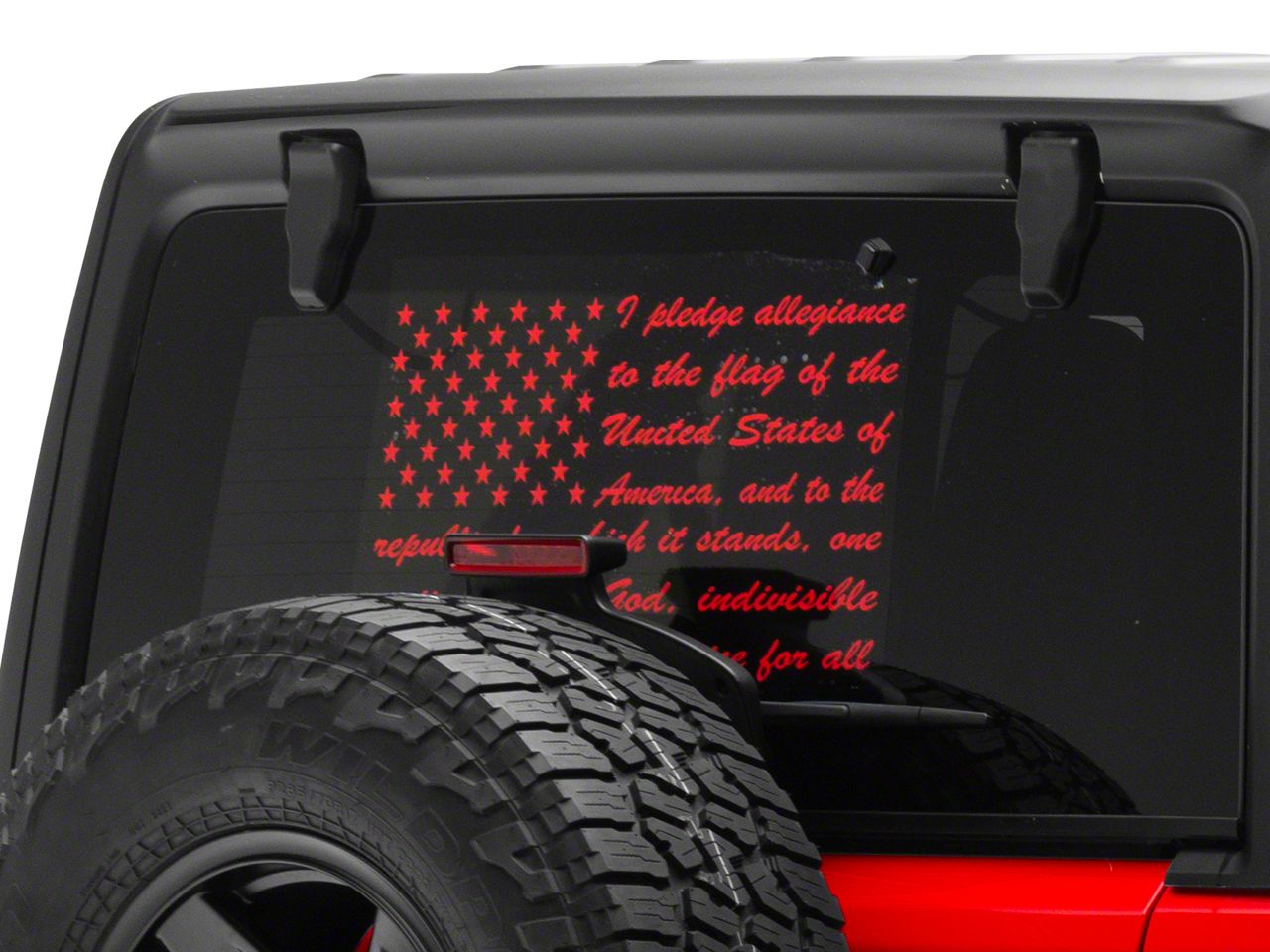 Application. This SEC10 Pledge of Allegiance Flag Decal; Red features a universal fitment and will fit all makes and models. Sold individually.