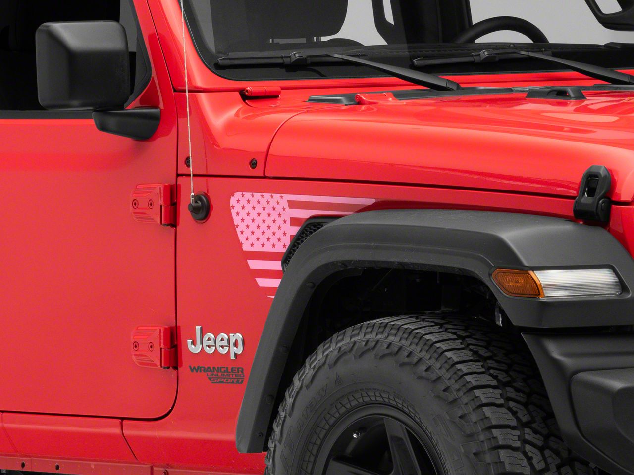 Application. These SEC10 Side Accent US Flag Decals; Pink are designed to fit 2018-2026 Jeep Wrangler JL models. Driver and passenger side included.