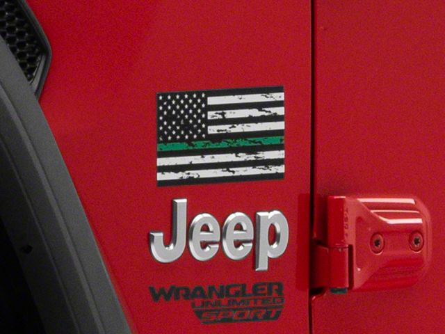 Patriotic Styling. A set of SEC10 Small Distressed Flag Decals are the perfect way to give your ride the exciting patriotic styling it's been lacking. Also notable is the green line that serves as one of the flag's stripes to show support for the men and women of the United States Military.