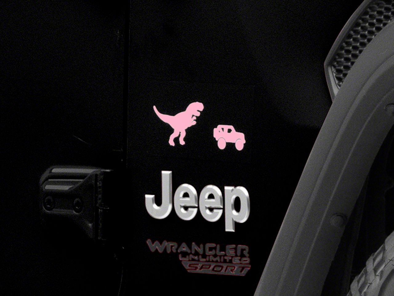 Application. This SEC10 T-Rex and Vehicle Silhouette Decal; Pink features a universal fitment and will fit all makes and models. Sold individually.