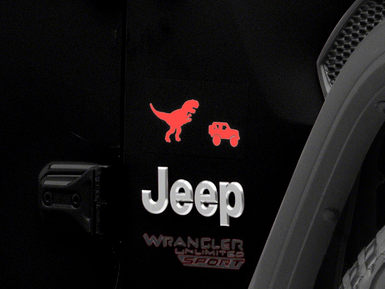 Application. This SEC10 T-Rex and Vehicle Silhouette Decal; Red features a universal fitment and will fit all makes and models. Sold individually.