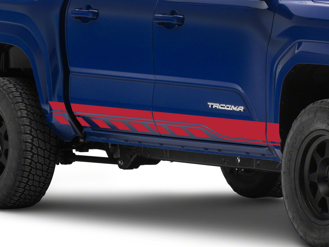 Application. These SEC10 Dash and Striped Rocker Stripes; Red feature a universal design and will fit all makes and models. Driver and passenger side included.