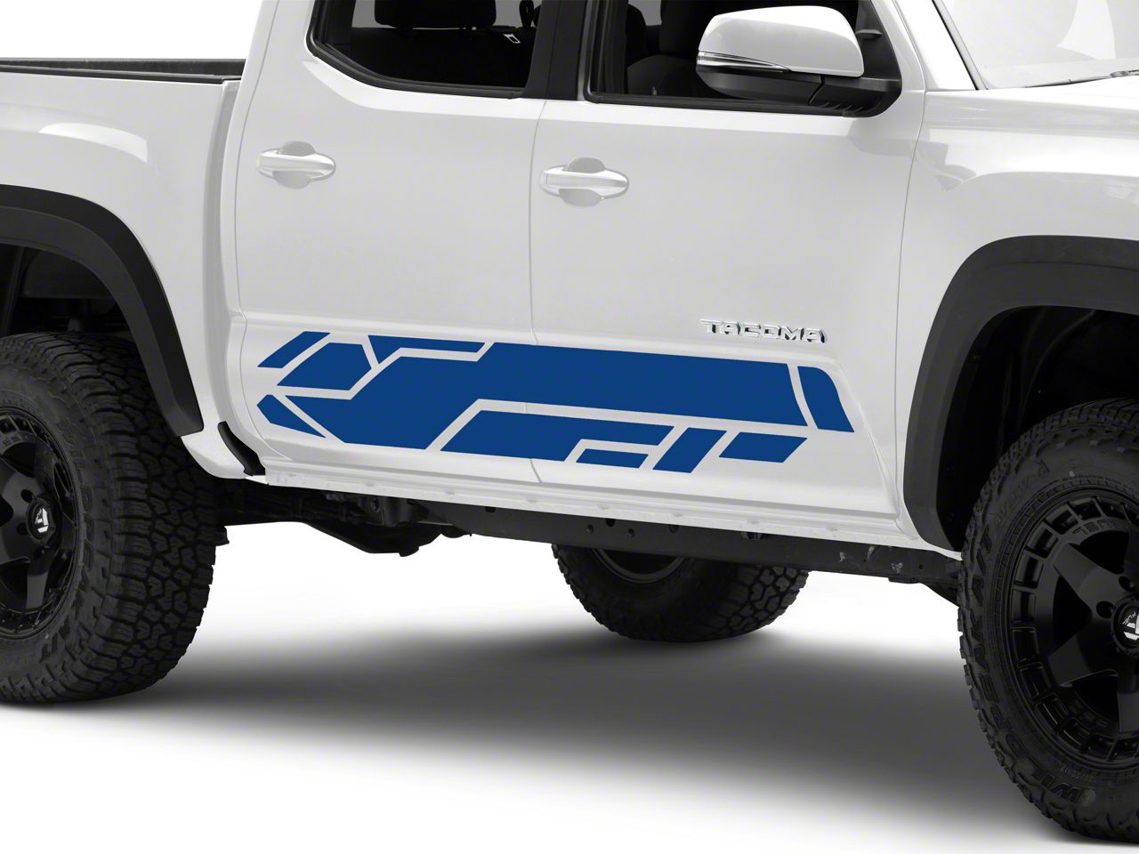 Application. These SEC10 Lower Side Graphic; Blue are designed to fit 2005-2026 Toyota Tacoma models. Driver and passenger side included.
