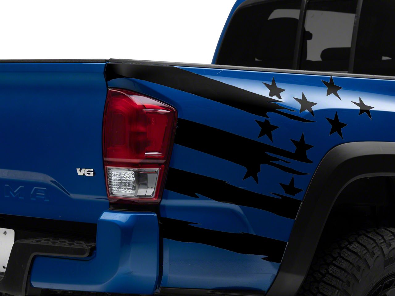 Application. These SEC10 Rear Bed Flag Decal; Gloss Black are designed to fit 2016-2023 Toyota Tacoma models. Driver and passenger side included.