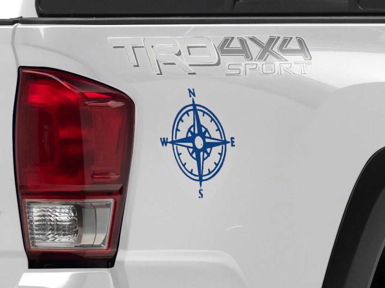Application. These SEC10 Small Compass Decals; Blue are designed to fit 2005-2026 Toyota Tacoma models. Driver and passenger side included.