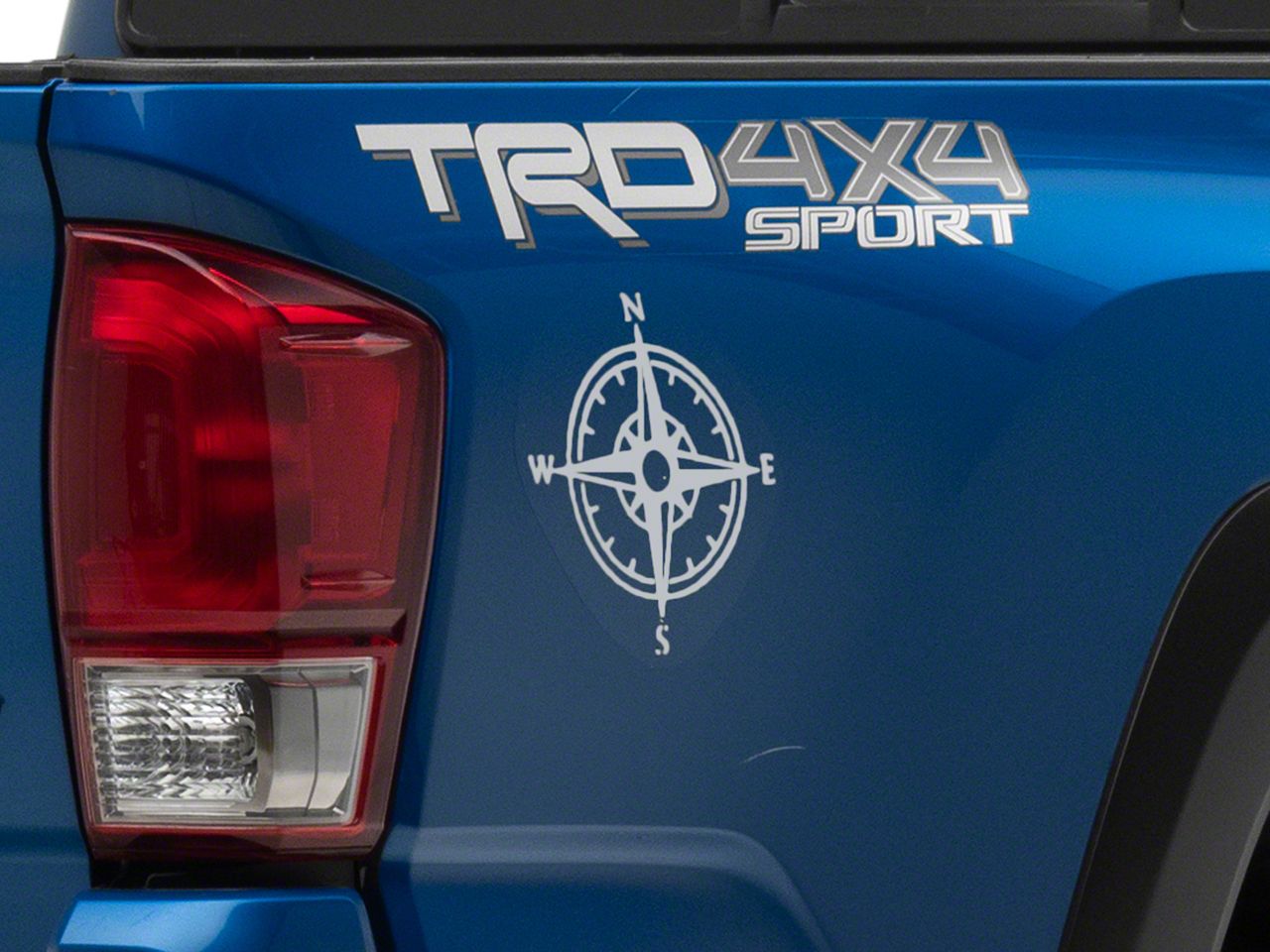 Four Point Compass Design. Now you can add adventurous off-road styling to your Toyota Tacoma with these SEC10 Small Compass Decals. These Compass Decals measure 8 x 8.25 inches and can be applied to any smooth flat surface and look especially good on your doors or rear quarter panels.