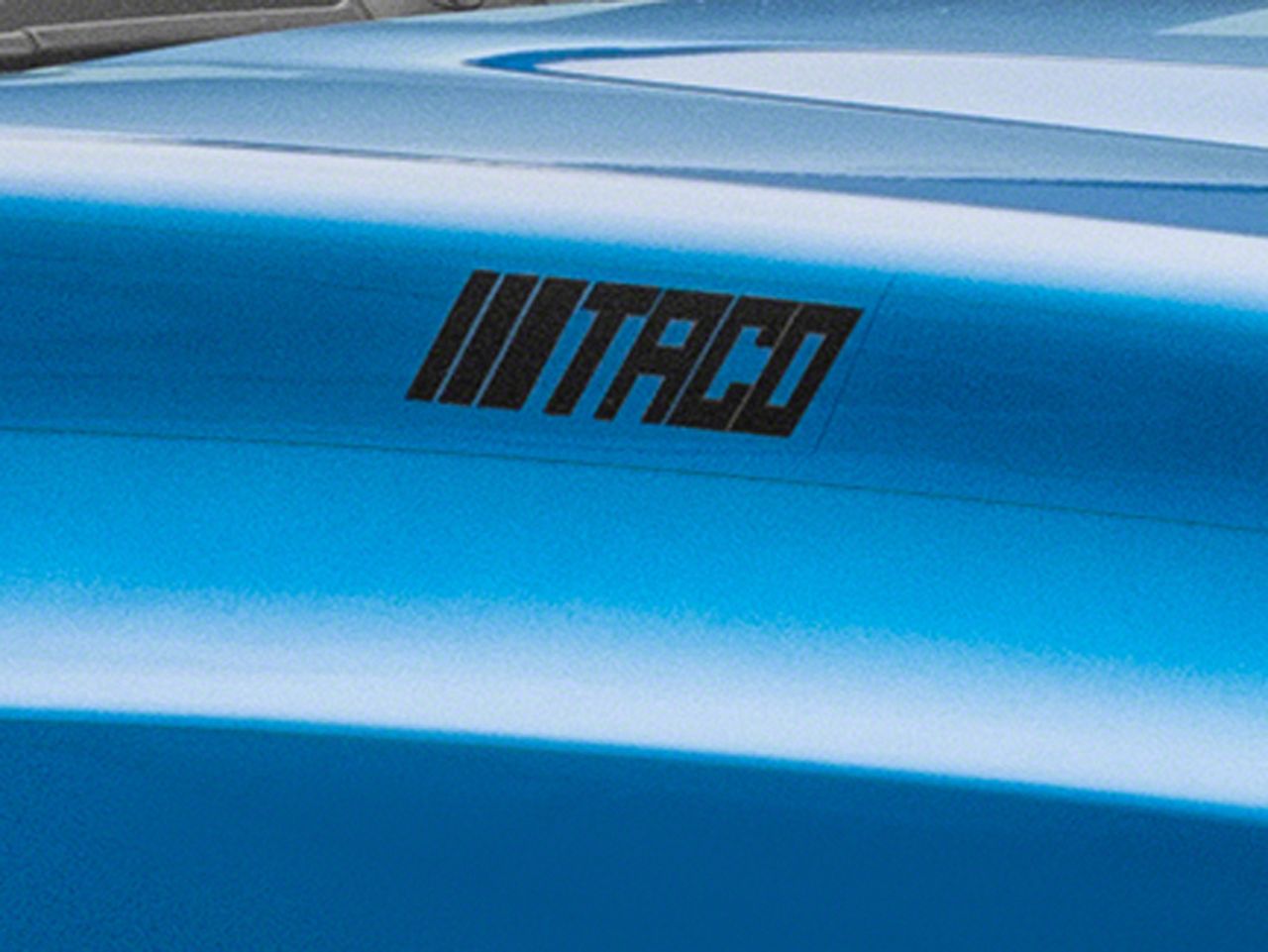 Novelty TACO Decal. This fun, novelty TACO decal is a great addition to any Toyota Tacoma. With a universal design, this Decal can be applied to any smooth flat surface and looks especially good in your rear/side windows, hood, fenders or on your tailgate.