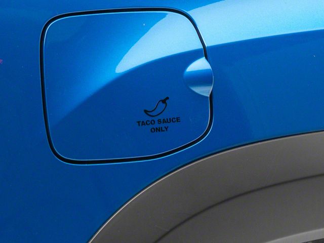 TACO Sauce Only. Let everyone know that your Tacoma runs on taco sauce with this humorously themed decal. This "TACO Sauce Only" decal was designed to be applied to your Tacoma's fuel door so you can have a chuckle every time you fill up.