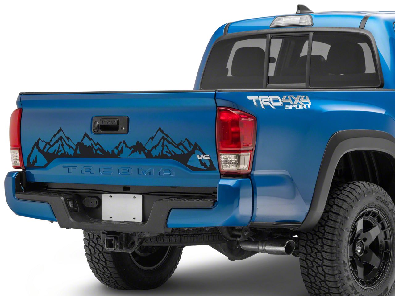 Mountain Range Tailgate Graphics. This SEC10 Mountain Range Tailgate Decal is a great way to show off how much you love off-roading in your Tacoma. Featuring a Mountain Range Graphic Design, this Decal is a simple and inexpensive way to update the look of your Toyota Tacoma.