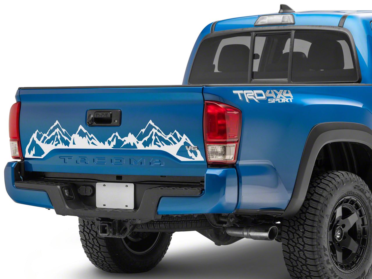 Mountain Range Tailgate Graphics. This SEC10 Mountain Range Tailgate Decal is a great way to show off how much you love off-roading in your Tacoma. Featuring a Mountain Range Graphic Design, this Decal is a simple and inexpensive way to update the look of your Toyota Tacoma.