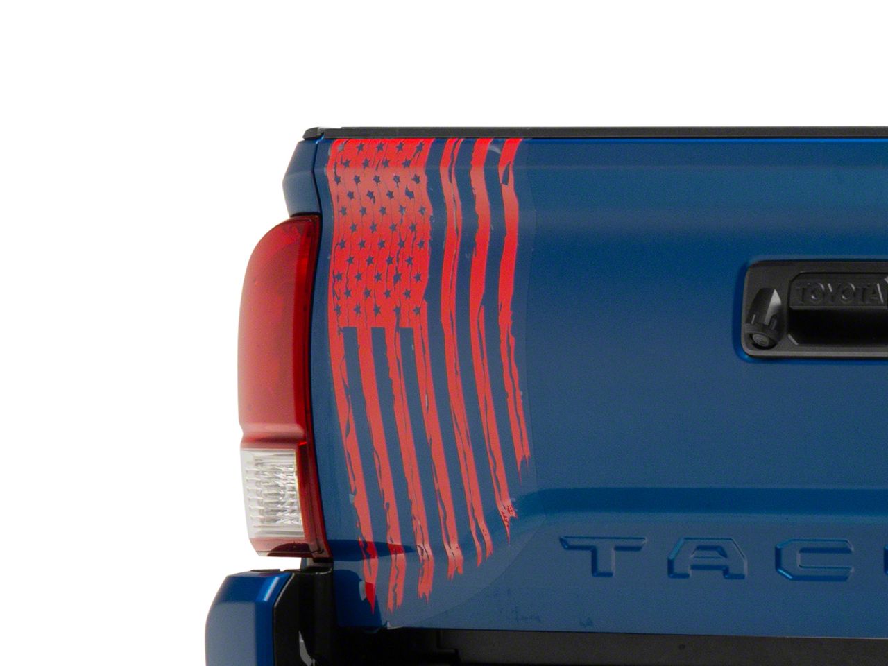 Application. This SEC10 Vertical Tailgate Distressed Flag Decal; Red is designed to fit 2005-2026 Toyota Tacoma models. Sold individually.