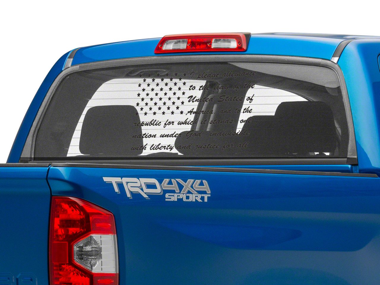 Pledge of Allegiance Flag Decal. Show that you are a proud American with this Pledge of Allegiance Flag Decal. Featuring the Pledge of Allegiance in an American Flag design, this Decal can be applied to any smooth flat surface and looks especially good in your rear/side windows or on your tailgate.