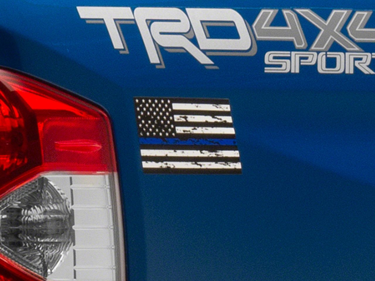 Patriotic Styling. A set of SEC10 Small Distressed Flag Decals are the perfect way to give your ride the exciting patriotic styling it's been lacking. Also notable is the blue line that serves as one of the flag's stripes to show support for the men and women of the United States law enforcement agency's.