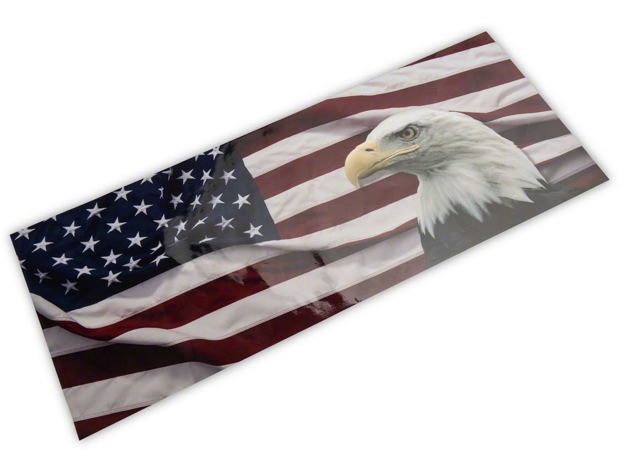 Patriotic Styling. Add the ultimate patriotic styling to the rear end of Toyota Tundra with a full color American Flag and Eagle Decal from SEC10. Designed to apply over your Tundra's tailgate, this vinyl decal is an excellent way to cover up any existing scuffs and scratches you may obtained over years of use. Complete with a waving American flag and a beautiful bald eagle, nothing says you love the good ole US of A more than outfitting your tailgate in iconic patriotic symbols.