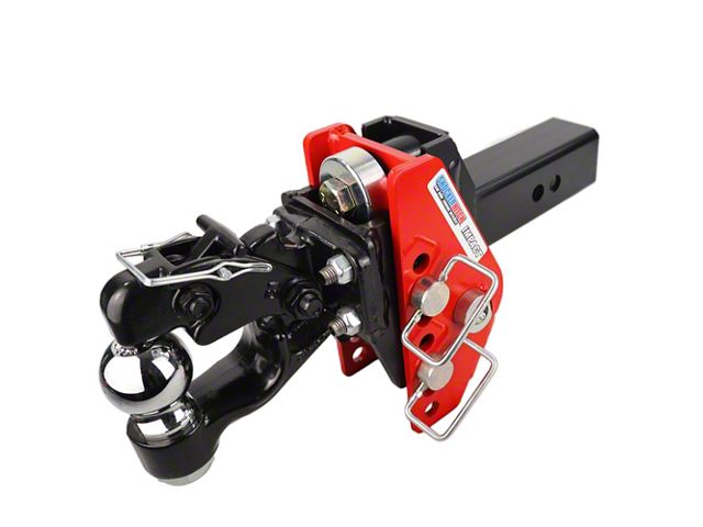 Versatile Towing Solution. The Shocker Hitch Impact Cushioned 2.50-Inch Receiver Hitch Ball Mount with Pintle Hook and 2-5/16-Inch Ball offers impact-absorbing technology for smoother towing experiences. This adjustable ball mount includes a pintle hook, making it versatile for a range of towing applications while reducing road shock for improved comfort and control.