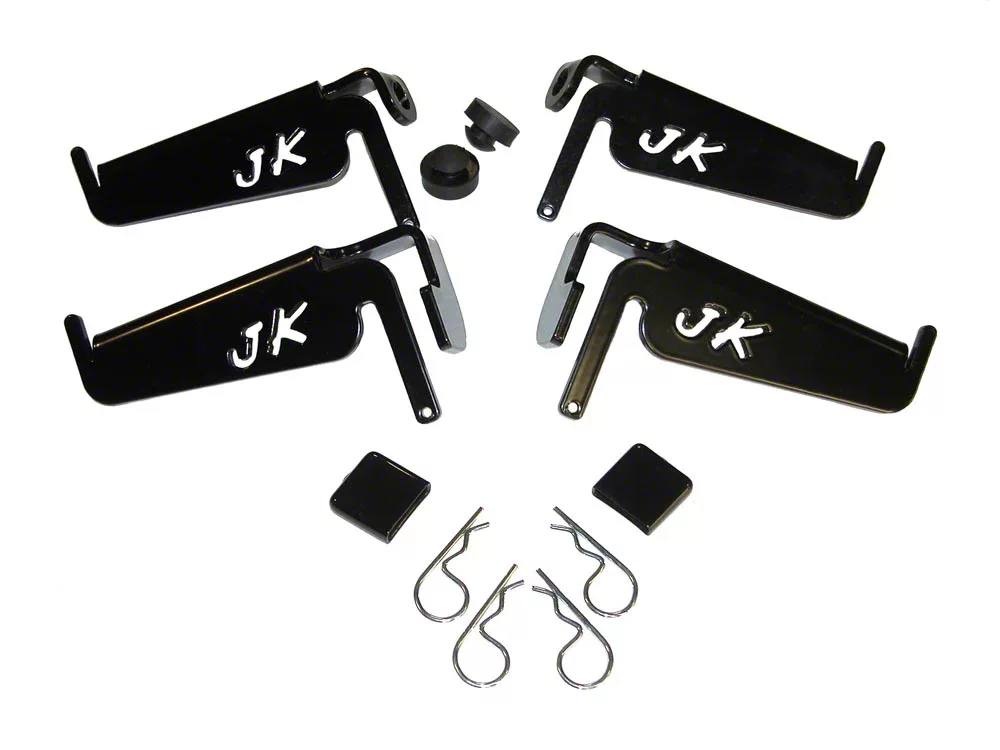 Skid Row Offroad's Foot Pegs are easily installed in the lower door hinge on both the driver and passenger side of your Jeep. In addition, this set includes foot pegs specifically designed for the front and rear doors.