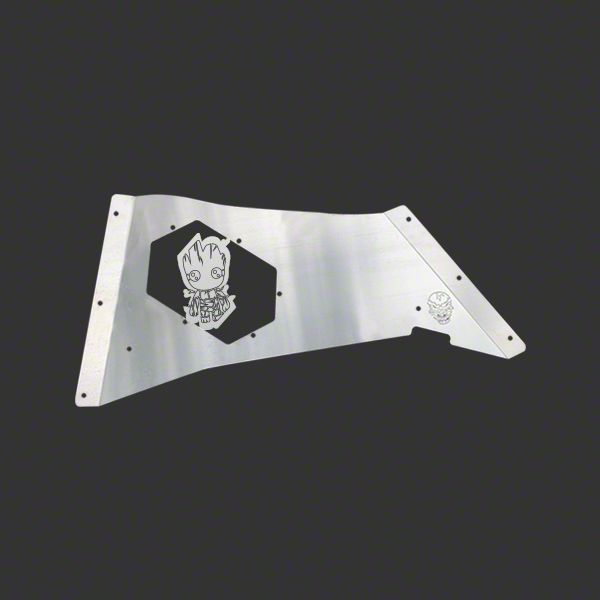 Distinctive Graphic. Set your Jeep apart with the unique Skull Krushers Rear Inner Fenders; Baby Groot. This custom design adds a fun, personalized touch to your vehicle, making it a head-turner wherever you go. Crafted from high-quality aluminum, these rear inner fenders offer superior durability without adding significant weight to your vehicle. This ensures enhanced performance and longevity, even in the most challenging environments.