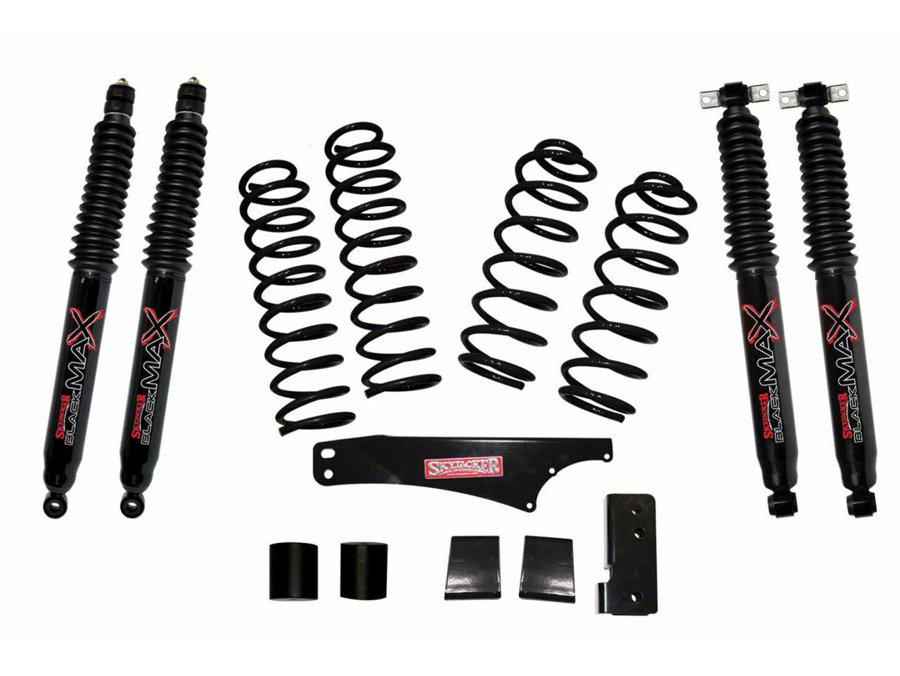 Application. The SkyJacker 2.5-inch Softride Suspension Lift Kit with Black MAX Shocks fits 2007-2018 Jeep Wrangler JK 4-door models.