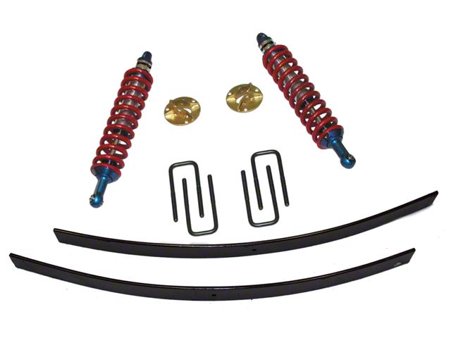 Rear Add-A-Leaf Leaf Springs. The Skyjacker 2.50-3 inch Coil-Over Suspension Lift Kit with Nitro Shocks also includes a pair of Add-A-Leaf leaf springs with this kit. This modular style leaf springs are added onto your existing set of leaf springs and is matches the front’s 2.50 to 3-inch lift. Made from heavy-duty steel and black powder-coated for rust resistance, these leaf springs also give your stock added strength.