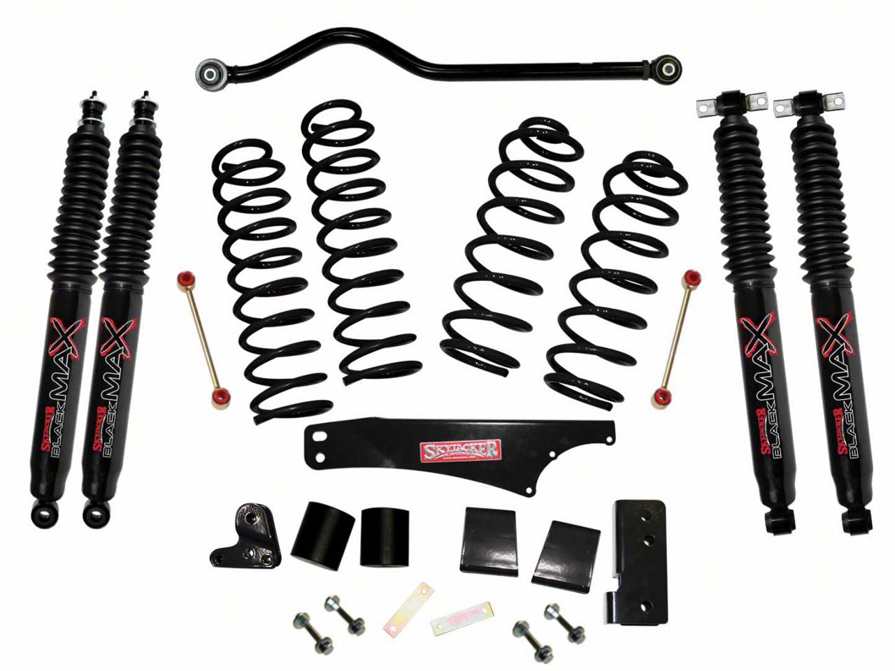 Upgrade Your Suspension. When you are ready to say goodbye to the factory suspension system in your Jeep, choose the SkyJacker 3.5 in. Softride Suspension Lift Kit w/ Black MAX Shocks. This kit provides you with a nice 3.5-inch lift, which is not too much or too little. You will find that this kit allows you to handle your Jeep out on the road without any complaints or issues with maneuverability.