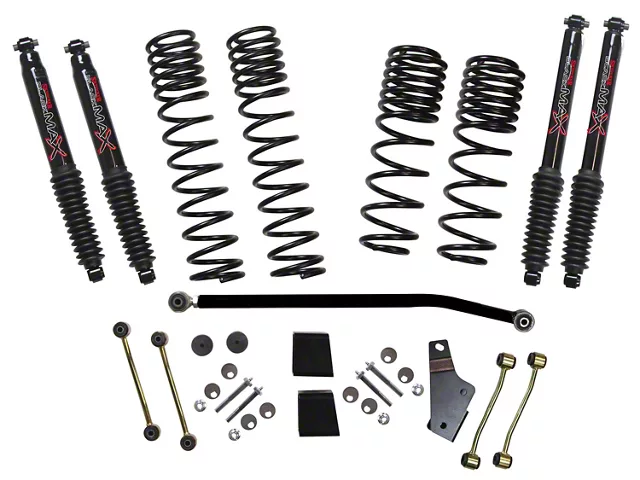 Innovative Lift. The SkyJacker 3.50-4 in. Dual Rate-Long Travel Lift Kit with Black MAX Shocks is a cutting-edge lift kit that features a spring coil that compresses and expands depending on the terrain you encounter. This all-inclusive kit has everything you need to give you up to 4 inches of lift. Specifically built for the 2018-2025 Jeep Wrangler JL 4-door (excluding Rubicon), you’ll get excellent highway performance as well as incredible off-road execution.