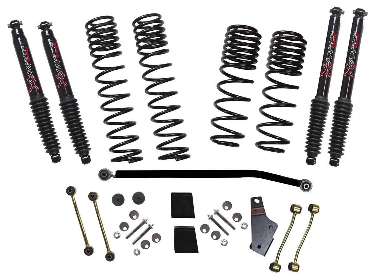 All Inclusive Kit. If you are looking for a lift kit that has everything you need for your 2018-2026 Jeep Wrangler JL Rubicon 4-door, then look no further than the SkyJacker 3.50-4 inch Dual Rate-Long Travel Lift Kit with Black MAX Shocks. This incredible kit will give you 3.50-4 inches of lift along with dual rate springs. It's built to deliver excellent highway performance as well as optimal execution when off-roading.