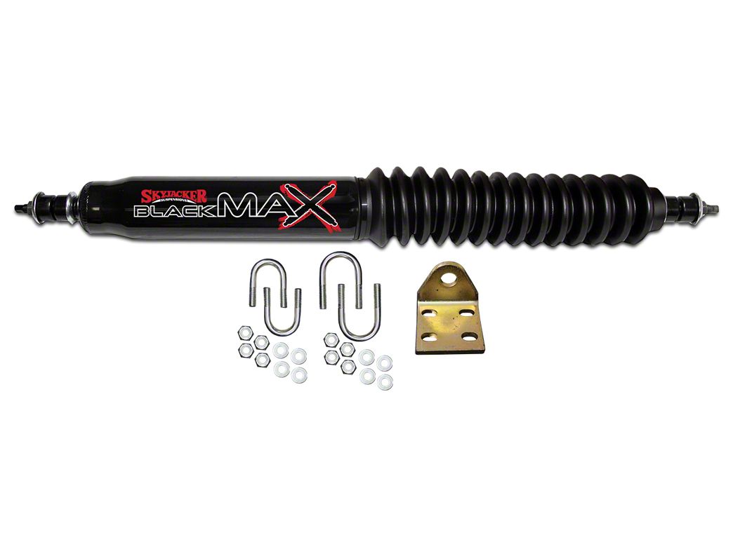 Black Max Shocks. The SkyJacker Black MAX Single Steering Stabilizer Kit comes with premium Black Max shocks that elevate the stabilizer above OEM with advanced foam-cell technology and multi-staging valving while maximizing heat dissipation. This will result in smoother handling and comfort. These shocks have a black powder coat finish that will provide protection from harsh elements and prevent corrosion and rust.