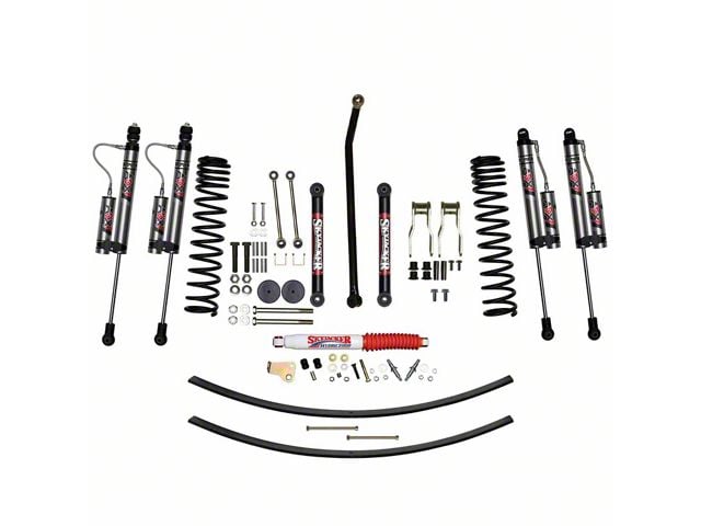 Gets the Job Done. The SkyJacker 4.50-Inch Dual Rate Long Travel Suspension Lift is designed to offer a substantial 4.5 inches of lift to your vehicle, significantly increasing ground clearance and improving its off-road capabilities. This lift kit not only provides more room for your vehicle's suspension travel but also accommodates larger 37-inch tires, enhancing both appearance and off-road performance. Despite the substantial lift, SkyJacker ensures that ride quality remains comfortable, whether you're cruising on the highway or tackling rugged trails.