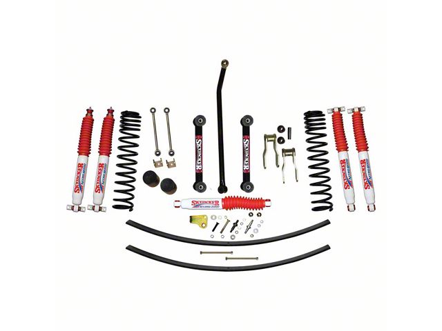 Reliable. This SkyJacker 4.50-Inch Front Dual Rate Long Travel Coil Suspension Lift Kit adds 4.50-inch of ground clearance to your Jeep Cherokee XJ, allowing you to tackle difficult off-road terrain with confidence while preventing undercarriage damage and making room for wider tires.