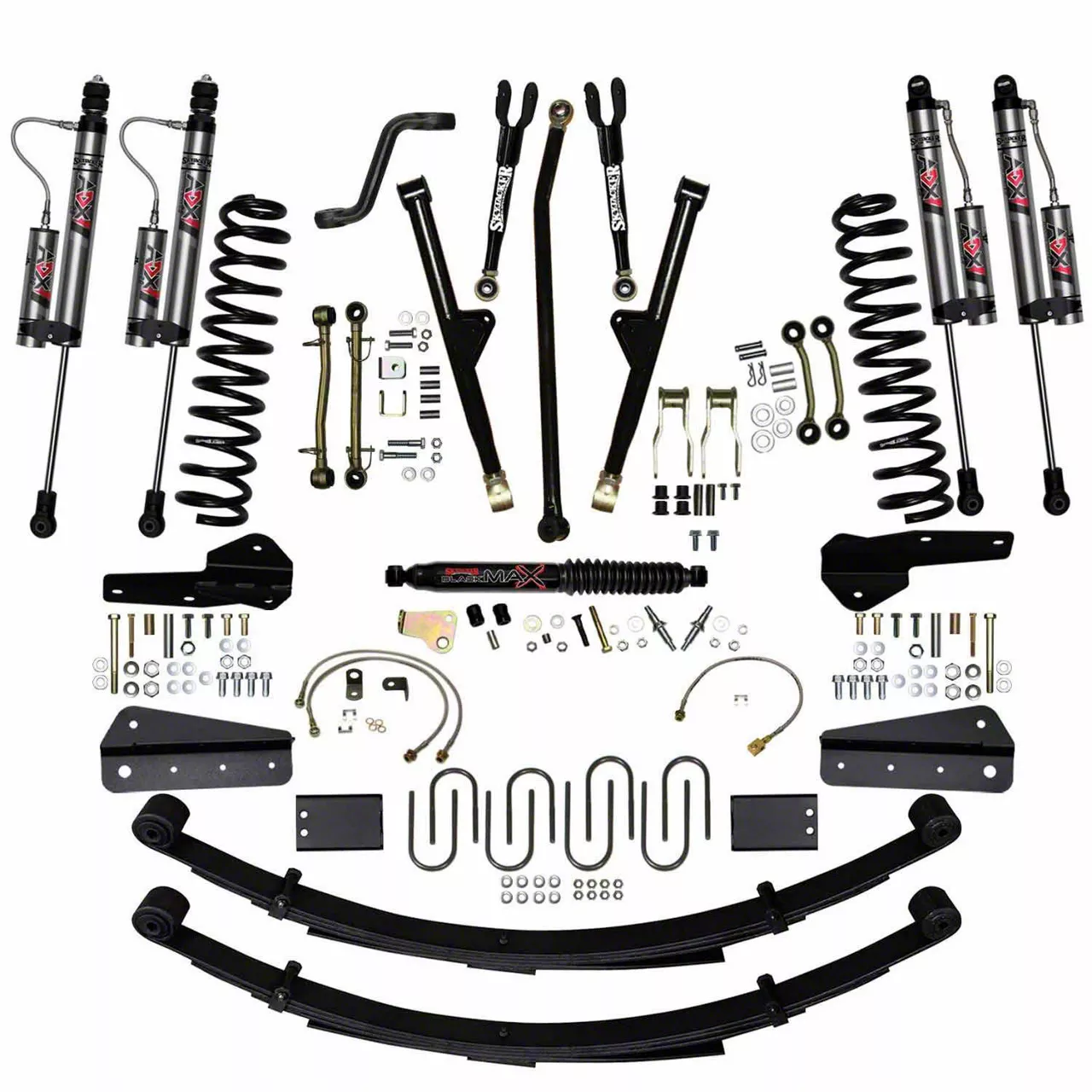 Ultimate Off-Road Experience. Take your Jeep Cherokee XJ's off-road capabilities to unprecedented heights with the SkyJacker 6-Inch Rock Ready 2 Suspension Lift Kit with ADX 2.0 Remote Reservoir Shocks. Featuring ADX 2.0 Remote Reservoir Shocks, this kit is designed to provide extreme durability, high performance, and unparalleled control, perfect for tackling any terrain you can throw at it. Offering a 6-inch lift, this kit enables you to install larger tires and achieve greater ground clearance. Navigate through rocky terrains, mud, and steep inclines without worrying about undercarriage damage or limitations.