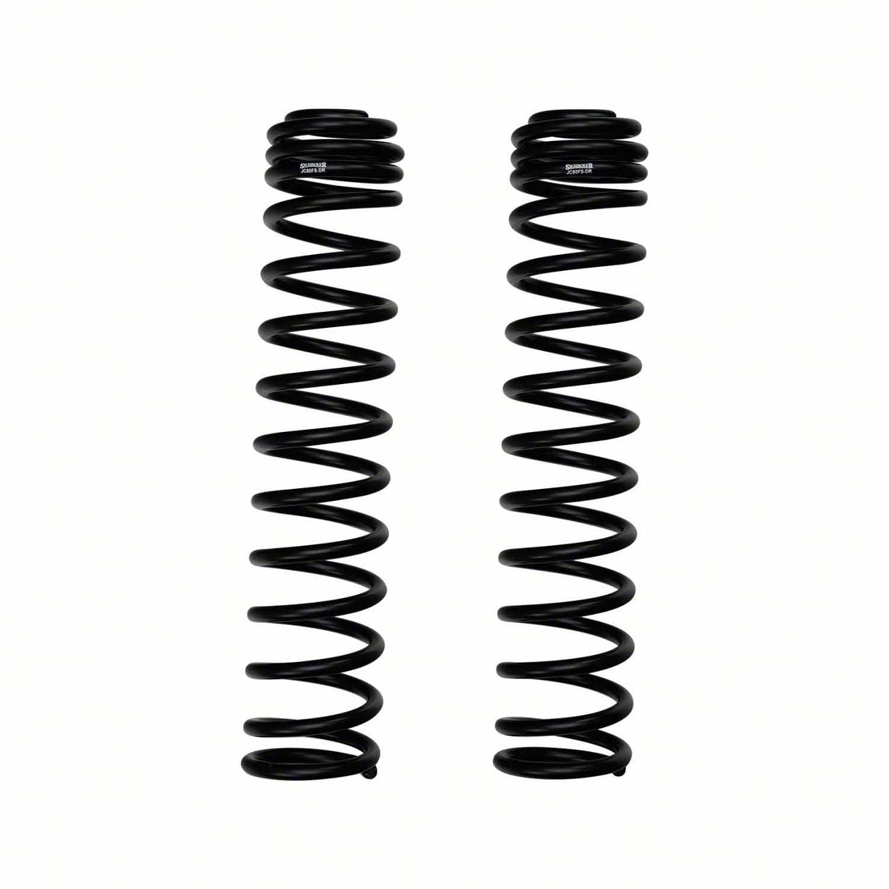 Enhanced Suspension Performance. The SkyJacker 8-Inch Front Dual Rate Long Travel Lift Coil Springs offers a significant enhancement to the vehicle's suspension system. These coil springs are designed with application- and vehicle-specific measurements to ensure a perfect fit and optimal performance. Featuring a dual-rate design, they provide the perfect balance between on-road comfort and off-road capability, enabling extended travel for improved handling and stability in a variety of terrains. The heavy-duty material utilization and precision-machined composition guarantee durability and longevity, while the drilling-free, straightforward installation makes upgrading your suspension system hassle-free.